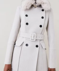Brand new โ Karen Millen Lydia Millen Petite Italian Wool Faux Fur Collar Longline ๐งฅ Coat ๐
