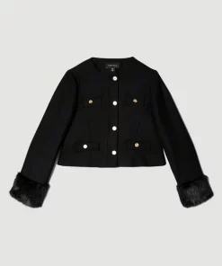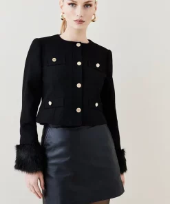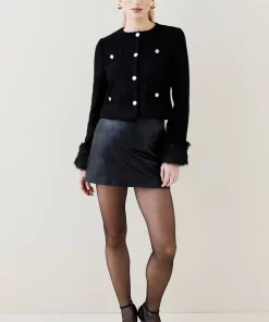 Main: %80 Responsible Wool, 20% Polyamide. Faux fur main: 100% Polyester. Lining: 100% Polyester. Professional dry clean only. Model wears UK size 8/ US size 4. Model height approx 5″9. Length approx: 48cm.