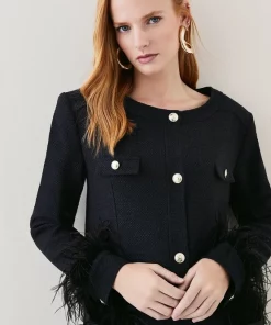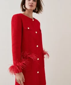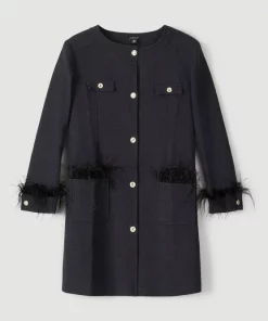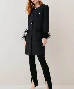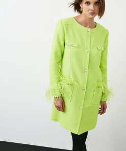 Main: 94% Cotton, 5% Polyester, 1% Elastane. Trim: Feathers. Lining: 100% Polyester. Dry clean only. Model wears UK 8/US 4. Model height: 5”9. Length measurement: 93cm.