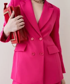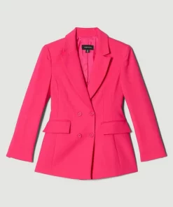 Showcase a penchant for versatile tailoring with this compact stretch double-breasted blazer. Framed with sharp shoulders and tailored from compact stetch fabric which subtly cinches the waist, this refined and polished piece will stand the test of time.
