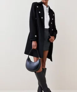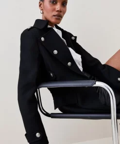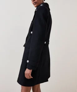 Main: 80% Virgin Wool, 20% Polyamide. Lining: 100% Viscose/Rayon. Professional dry clean only, trims must be covered during cleaning. Do not iron, lightly steam to regain appearance. Model wears UK 8/ US 4. Model height: 5″9. Length measurement: 93cm.