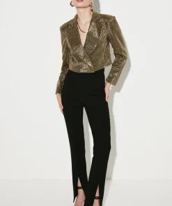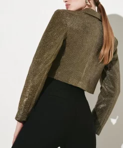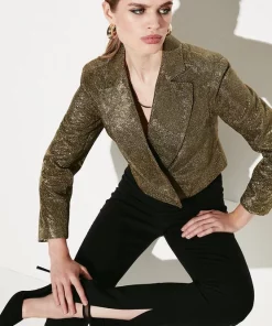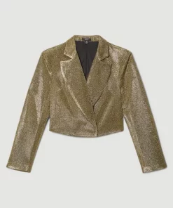 Step into the midnight hour in scintillating tailoring. This blazer takes cues from iconic tailoring for a timeless finish, updated with the lustrous depth of a metallic finish.