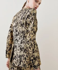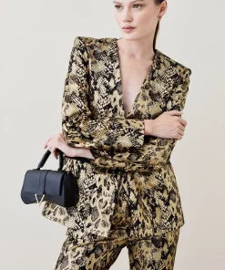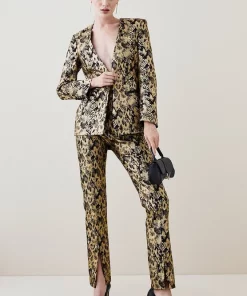 Update your tailoring collection with the streamlined aplomb of this contemporary piece. A collarless silhouette, this single-breasted piece cuts a bold form with oversized shoulders.