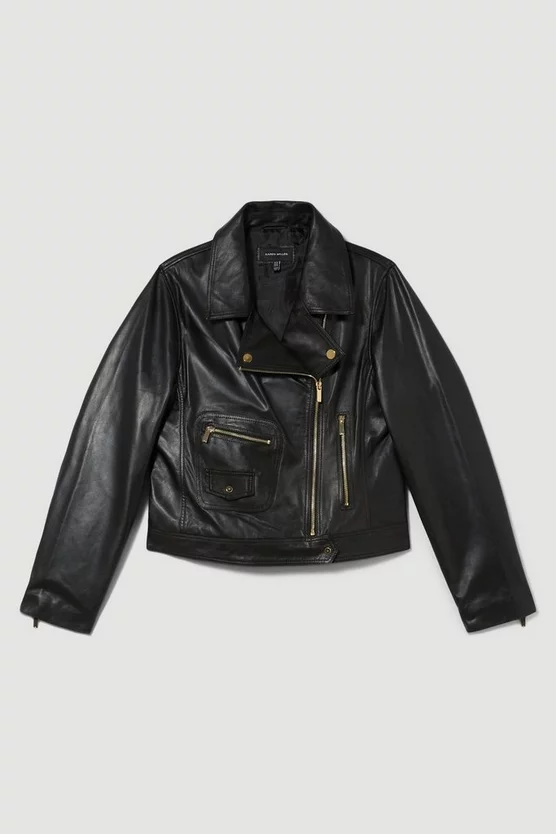 Hot Sale โค๏ธ Karen Millen Leather Oversize Crop Washed Biker Jacket โญ