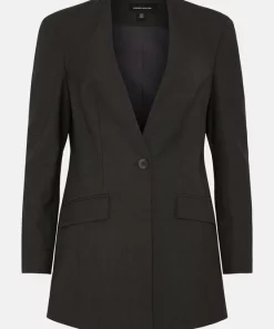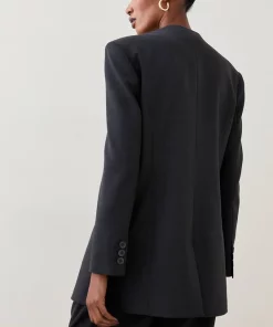 Sculpted with timeless reverence, this bold blazer is updated with the contemporary addition of a collarless neckline. Sharp in its structural lines, pair with matching trousers for the ultimate polished ensemble.