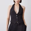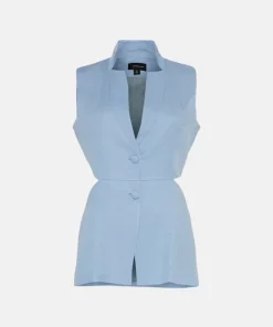 A modern take on the classic tailored waistcoat. Crafted from summer-ready linen for a crisp, natural finish, this clean-lined piece is perfect for warm work days and features edgy side cut-outs, a neat collar and two fabric-covered buttons for a final minimal flourish.
