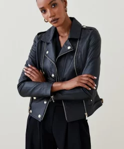Cheap 💯 Karen Millen Leather Military Zip Detail Biker Jacket ⭐