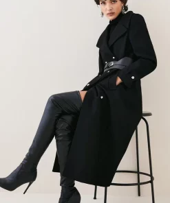 Best deal โ Karen Millen Italian Virgin Wool Faux Leather Contrast Double Breasted ๐งฅ Coat โจ