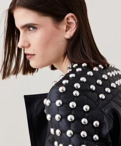 New ๐ Karen Millen Leather Dome Stud & Quilted Detail Biker Jacket โ๏ธ