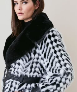 Deals ๐ Karen Millen Plus Size Peplum Mono Faux Fur Pu Belted Jacket ๐