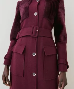 Brand new โ Karen Millen Lydia Millen Petite Italian Wool Faux Fur Collar Longline ๐งฅ Coat ๐
