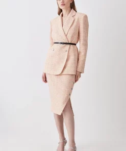Cheap โ๏ธ Karen Millen Petite Satin Palm Print Belted Woven Jacket ๐