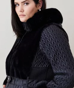 Deals 😉 Karen Millen Plus Size Signature Quilt Short Belted 🧥 Coat 🥰