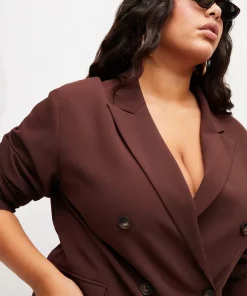 Flash Sale ✨ Karen Millen Plus Size Soft Twill Ruched Sleeve Double Breasted Jacket ✔️