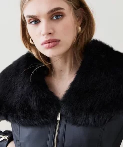 Deals 🛒 Karen Millen Leather & Toscana Collar Biker Jacket 🔔