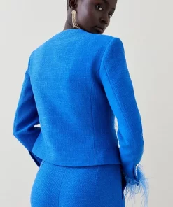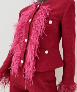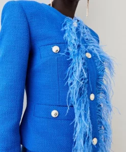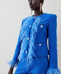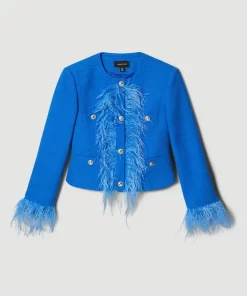 Main: 94% Cotton, 5% Polyester, 1% Elastane. Trim: Feathers. Lining: 100% Polyester. Dry clean only. Model wears UK size 8/ US size 4. Model height approx 5″9. Length approx: 48cm.