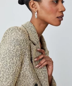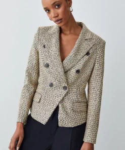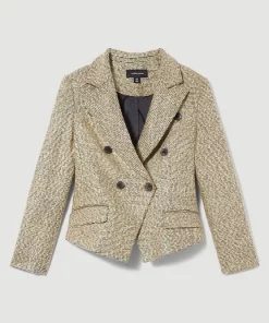 Main: 50% Polyester, 24% Viscose, 22% Acrylic, 3% Metallised fibre, 1% Elastane. Lining: 100% Polyester. Dry clean only. Model wears UK 8/US 4. Model height: 5″9. Length measurement: 56cm.