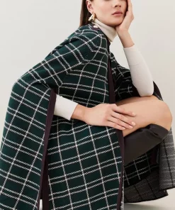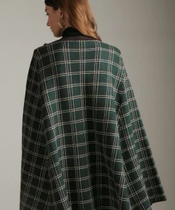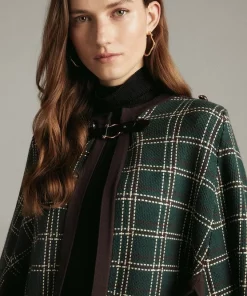 Bringing heritage allure to winter looks, this tartan check cape has a snug, knitted finish and draped fit. Trimmed with buttoned epaulettes and a buckle closure, it lends shape and style to all-black ensembles.