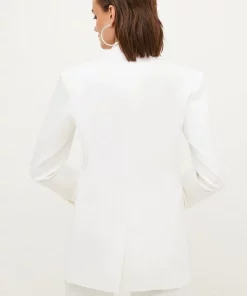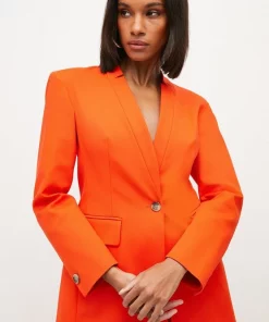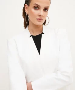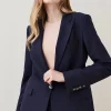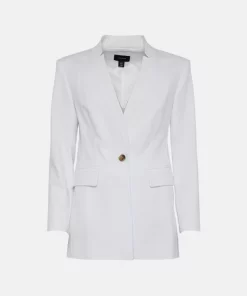 Interesting notched detailing lends this classic cotton-blend jacket a directional touch. Detailed with a single button closure and flap pocket detailing, this luxe long-sleeved style makes smart-day suiting a fresh option for workdays and beyond.
