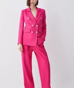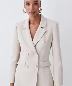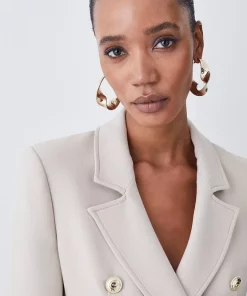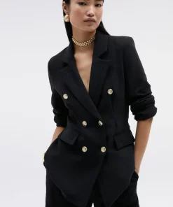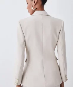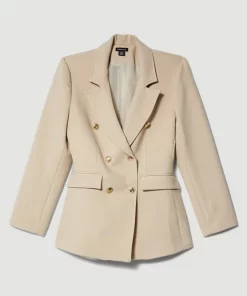 A sculptural rendition of the classic blazer, this piece offers endless sophistication. Sharp tailoring and double-breasted buttons create a cinched silhouette, while classic notched lapels and flap pockets add a traditional touch. Style this blazer with co-ordinating tailored trousers for a powerful ensemble, or size up for a contemporary, oversized aesthetic.