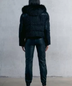 This puffer jacket will provide the final touches to your edgy ensemble. Boucle fabric contrasts with a sleek, high-gloss finish to create a jaw-dropping result. A faux fur-trimmed hood adds a touch of extravagance.