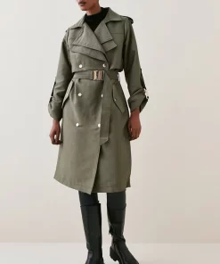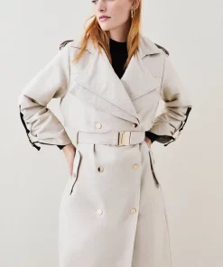 Showcasing a classic silhouette with intricate details, this trench coat makes a sophisticated choice for a multitude of occasions. A storm flap, military belt details, notched lapels and shoulder epaulettes give this piece a premium feel, while classic flap pockets offer practicality.