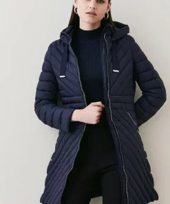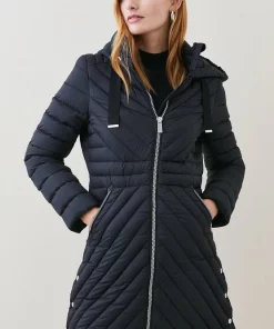 Shell:100% Nylon. Binding: 100% Polyester. Filling: 100% Down. Do not use fabric conditioner. Wash with similar colours. Model wears UK 8/US 4. Model height: 5″9. Length measurement: 88cm.