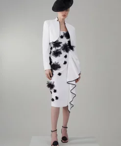 Cut in an elegant, curved shape, this cropped jacket provides a refined addition to occasionwear dressing. Featuring a classic monochrome palette, this piece can be paired with a dress or tailored ensemble with ease.