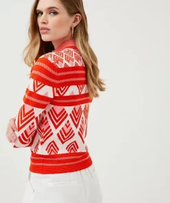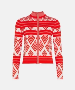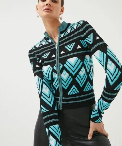 A vibrant layer for changeable days, this bold geo jacquard jacket is crafted from patterned knit fabric and features a sporty full-length zip lining the front. Equipped with a high neckline and long, form-fitting sleeves, it blends sports-luxe appeal with a high-energy vibe thatβs perfect for pepping up plain separates.