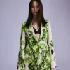 55% polyamide, 45% viscose. Sleeve 100% polyester. Wash at 30 with similar colours, dry and store flat. Model wears a size S and is 5’9.