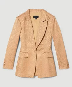 Scintillating with dimensional depth, this blazer expertly plays with proportions. Rendered from lustrous Italian jacquard, itβs sculpted to the form with an unparalleled focus on craftsmanship.