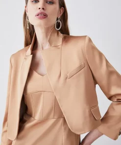 Main: 75% Acetate, 22% Polyamide, 3% Elastane. Lining: 100% Polyester. Dry clean only. Model wears UK 8/US 4. Model height: 5″9. Length measurement: 48cm.