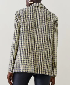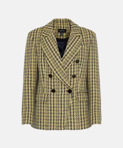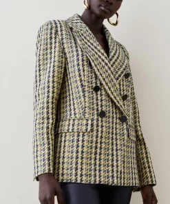 Embrace traditional tailoring with this heritage tweed blazer. Accented with brass buttons, jetted pockets and a double-breasted lapel collar, this garment exudes timeless elegance. Layer on top of an all-black ensemble to make a truly striking impact.