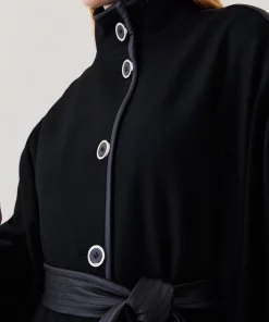 Main: 80% Wool, 20% Polyamide. Professional dry clean only. Do not iron. Lightly steam to regain appearance. Model wears UK size 8/ US size 4. Model height approx 5″9. UK 10 Length Approx. 85cm
