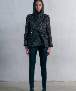 Crafted with a subtle leopard print motif, this jacquard jacket adds a suave touch to casual styling.