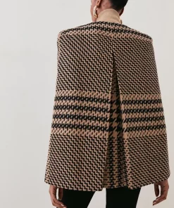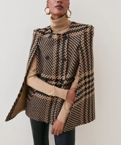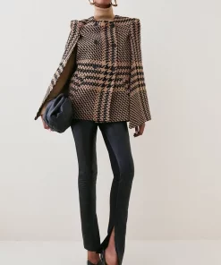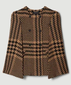 Woven with luxurious Italian wool and clad in a traditional check print, this cape coat makes a classic addition to your autumn wardrobe. Double-breasted buttons feature signature Karen Millen embossing for a premium touch, while padded shoulders and a sharp pressed crease add definition to this timeless piece.