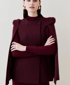 The perfect addition to your transitional wardrobe, this covetable cape coat adds instant polish to any ensemble. Crafted with luxurious Manteco wool and woven in an autumnal merlot hue, this coat is the height of sophistication.