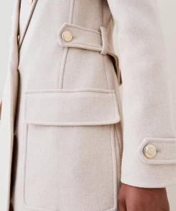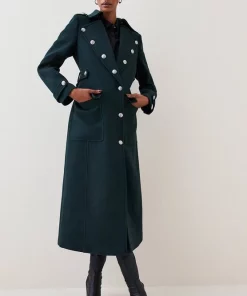 Crafted with Italian wool for a sumptuous feel, this longline coat offers endless sophistication. Embossed gold-tone military buttons add a premium touch, while large flap pockets provide functionality.