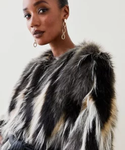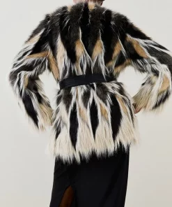 Faux Fur: 46% Acrylic, 39% Modacrylic, 15% Polyester. Lining: 100% Polyester. Remove Belt Before Cleaning. Do Not Dry Clean. Model wears UK 8/US 4. Model height: 5″9. Length measurement: 80cm.