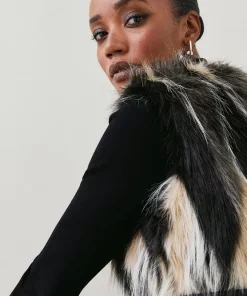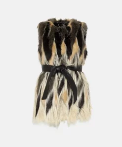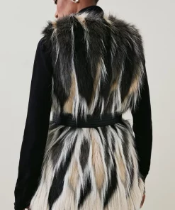 Faux Fur: 46% Acrylic, 39% Modacrylic, 15% Polyester. Lining: 100% Polyester. Remove belt before cleaning. Do Not Dry Clean. Model wears UK 8/US 4. Model height: 5″9. Length measurement: 80cm. d