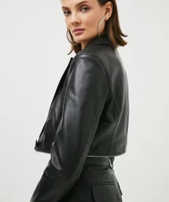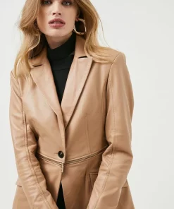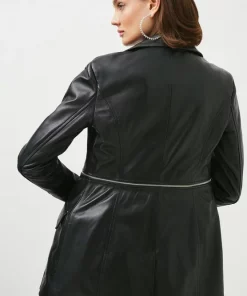 Main: 100% Leather, Lining: 100% Polyester. Specialist Dry Clean Only. Model wears UK size 8/ US size 4/ Model Height;5’9. Size 10 Centre back length: 74cm.This garment is READY FOR THE FUTURE. It is made with responsibly sourced leather from tanneries working to reduce their environmental impact.