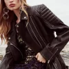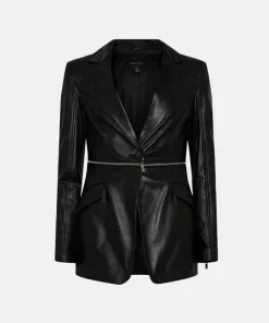 Boasting two styling options via one investment-worthy piece, this luxe leather blazer features a silver-toned zip framing the waistline to allow you to style it as a cropped jacket, or as a more classic piece. Featuring a single button closure, notched lapels and flap pockets, this versatile blazer lets you style it as the mood ? or occasion ? demands.