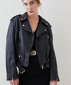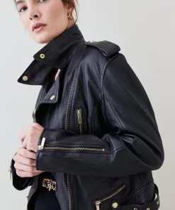 Main: 100% Sheepskin nappa leather. Lining: 100% Polyester. Professional dry clean only. Model wears UK size 8/ US size 4. Model height approx 5″9. Length approx: 47cm.
