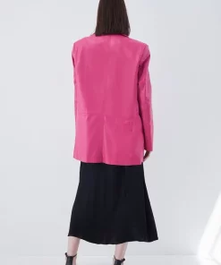 Some things truly never go out of style, take this luxe leather blazer as a refined example. Both modern and classic, it shows off a softly tailored shape complete with a longline hem, notched lapels and contrast button closures for a beautifully simple, streamlined effect.