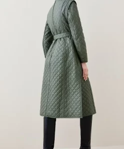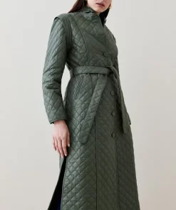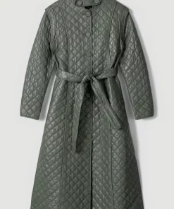 Our trademark leather craftsmanship is channelled into the contemporary vision of this coat. Presenting your next trademark piece, it has a quilted construction with a latched neckline and belted waist for versatile styling.