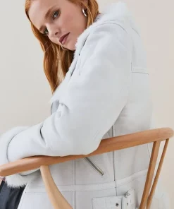 Main: 100% Responsibly Sourced Sheepskin Shearling. Lining: 100% Polyester. Do not clean. Model wears UK 8/US 4. Model height: 5″9. Length measurement: 59cm.