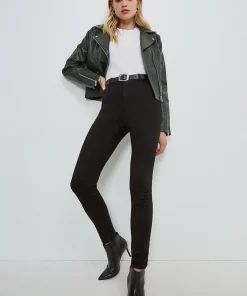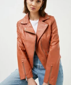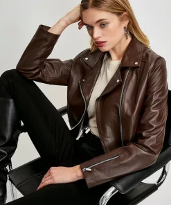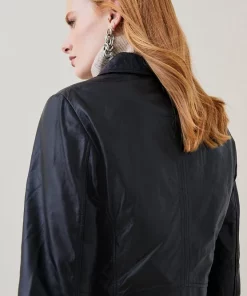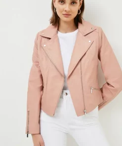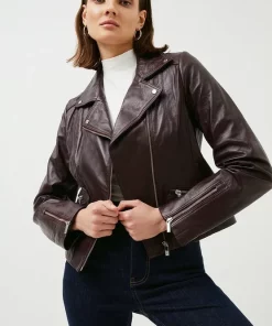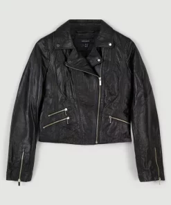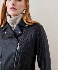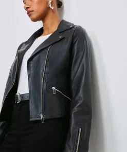 A real signature item, this leather jacket keeps you looking stylish from season to season. Using expertly placed panelling to create a lightly tailored silhouette, the biker comes cropped at the waist for a flattering look. Our signature KM-branded buttons and glossy zips also give the classic leather an ultra-premium feel.