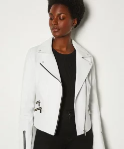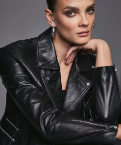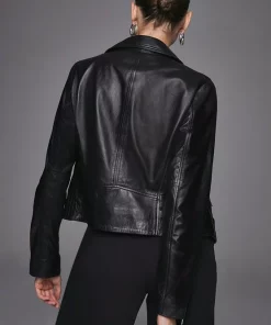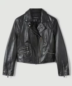 Boasting beautifully boxy proportions that promise to never drown your figure, our timeless leather jacket is a year-round must-have. Classic biker-style details like silver-tone zips and notched lapels perfectly encapsulate the timeless mood of a jacket that only gets better with age.