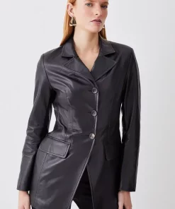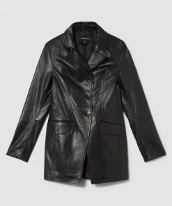 Fusing traditional tailoring with sumptuous leather, this blazer promises to add a considered edge to any ensemble. Boasting a slimline fit, this piece can be paired with tailored trousers or a maxi skirt for a polished look. The blazer is finished with signature KM embossed buttons for a premium touch.