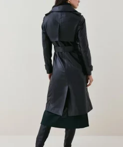 Cut from a sumptuous swathe of butter-soft, this tasteful trench coat adds undeniable luxury to everyday ensembles. It features tonal double-breasted buttons, a waist-cinching belt and buttoned pockets for a practical finish.